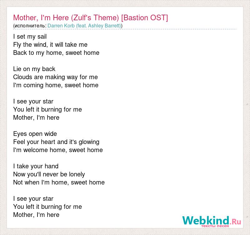 Главная→Исполнители→Darren Korb (feat. Ashley Barrett)→Mother, I'm Here (Zulf's Theme) [Bastion OST]
