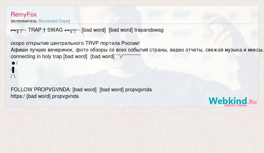 ︻╦╤─ TRAP † SWAG ︻╦╤─ [bad word] [bad word] trapandswag скоро открытие центрального TRVP портала России! Афиши лучших вечеринок, фото обзоры со всех событий страны, видео отчеты, свежая музыка и миксы. connecting in holy trap [bad word] [bad word] ¯¯\/¯¯¯¯¯¯¯¯¯¯ ☻/ /▌ / \ FOLLOW PROPVGVNDA: [bad word] [bad word] propvgvnda https:/ [bad word] propvgvnda