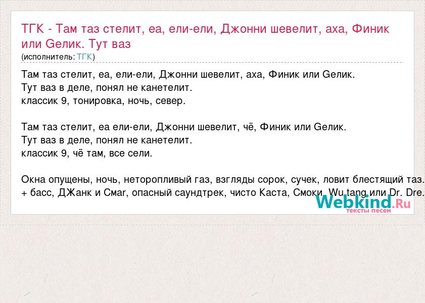 ТГК - Там таз стелит, еа, ели-ели, Джонни шевелит, аха, Финик или Gели
