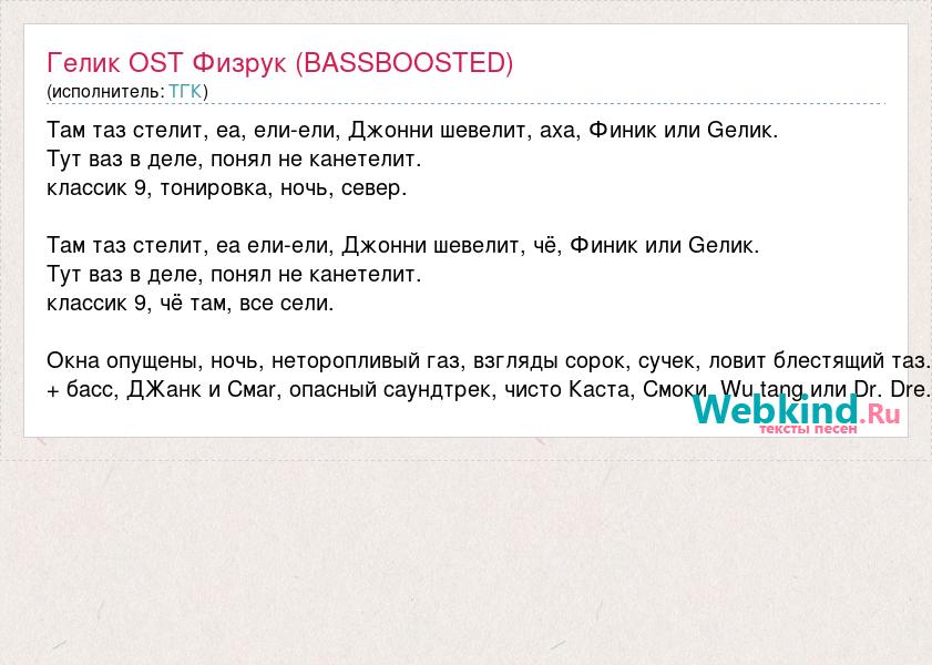 Там таз стелит, еа, ели-ели, Джонни шевелит, аха, Финик или Gелик. Тут ваз в деле, понял не канетелит. классик 9, тонировка, ночь, север. Там таз стелит, еа ели-ели, Джонни шевелит, чё, Финик или Gелик. Тут ваз в деле, понял не канетелит. классик 9, чё там, все сели. Окна опущены, ночь, неторопливый газ, взгляды сорок, сучек, ловит блестящий таз. + басс, ДЖанк и Смаr, опасный саундтрек, чисто Каста, Смоки, Wu tang или Dr. Dre.