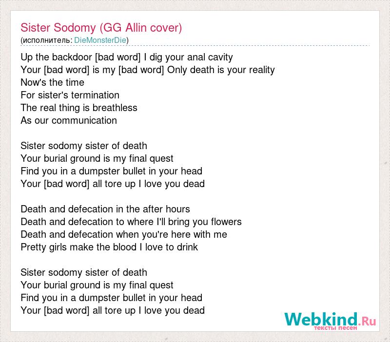 А как ты думаешь, о чем песня "Sister Sodomy (GG Allin cover)" ?