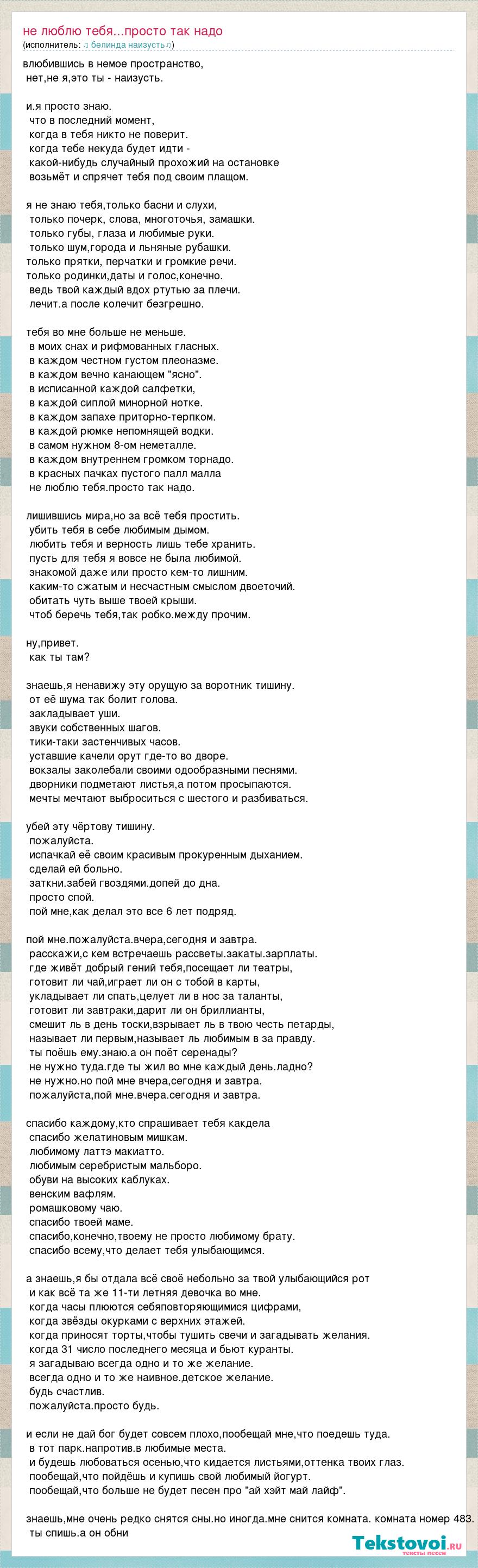 А как ты думаешь, о чем песня "Не люблю тебя...просто так надо" ?