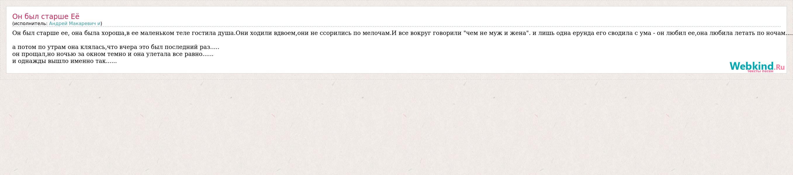 А как ты думаешь, о чем песня "Он был старше Её" ?