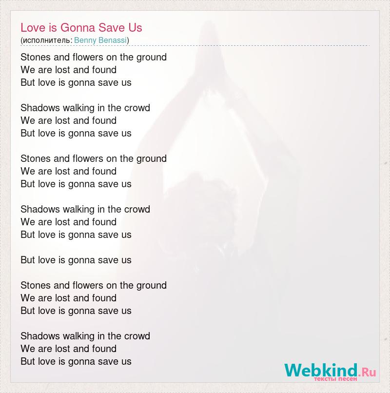 Stones and flowers on the ground We are lost and found But love is gonna save us Shadows walking in the crowd We are lost and found But love is gonna save us Stones and flowers on the ground We are lost and found But love is gonna save us Shadows walking in the crowd We are lost and found But love is gonna save us But love is gonna save us Stones and flowers on the ground We are lost and found But love is gonna save us Shadows walking in the crowd We are lost and found But love is gonna save us