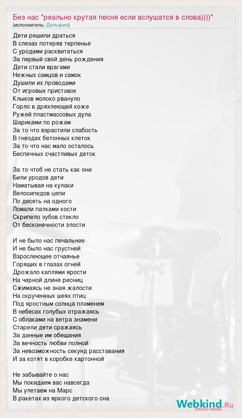 А как ты думаешь, о чем песня "Без нас *реально крутая песня если вслушатся в слова))))*" ?