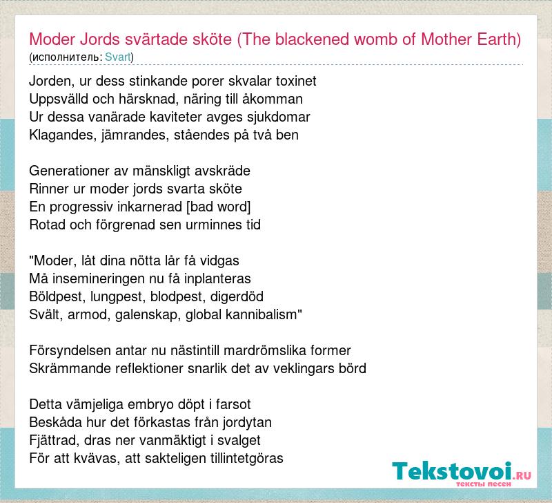 А как ты думаешь, о чем песня "Moder Jords svärtade sköte (The blackened womb of Mother Earth)" ?