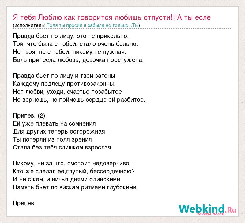 А как ты думаешь, о чем песня "Я тебя Люблю как говорится любишь отпусти!!!А ты есле" ?