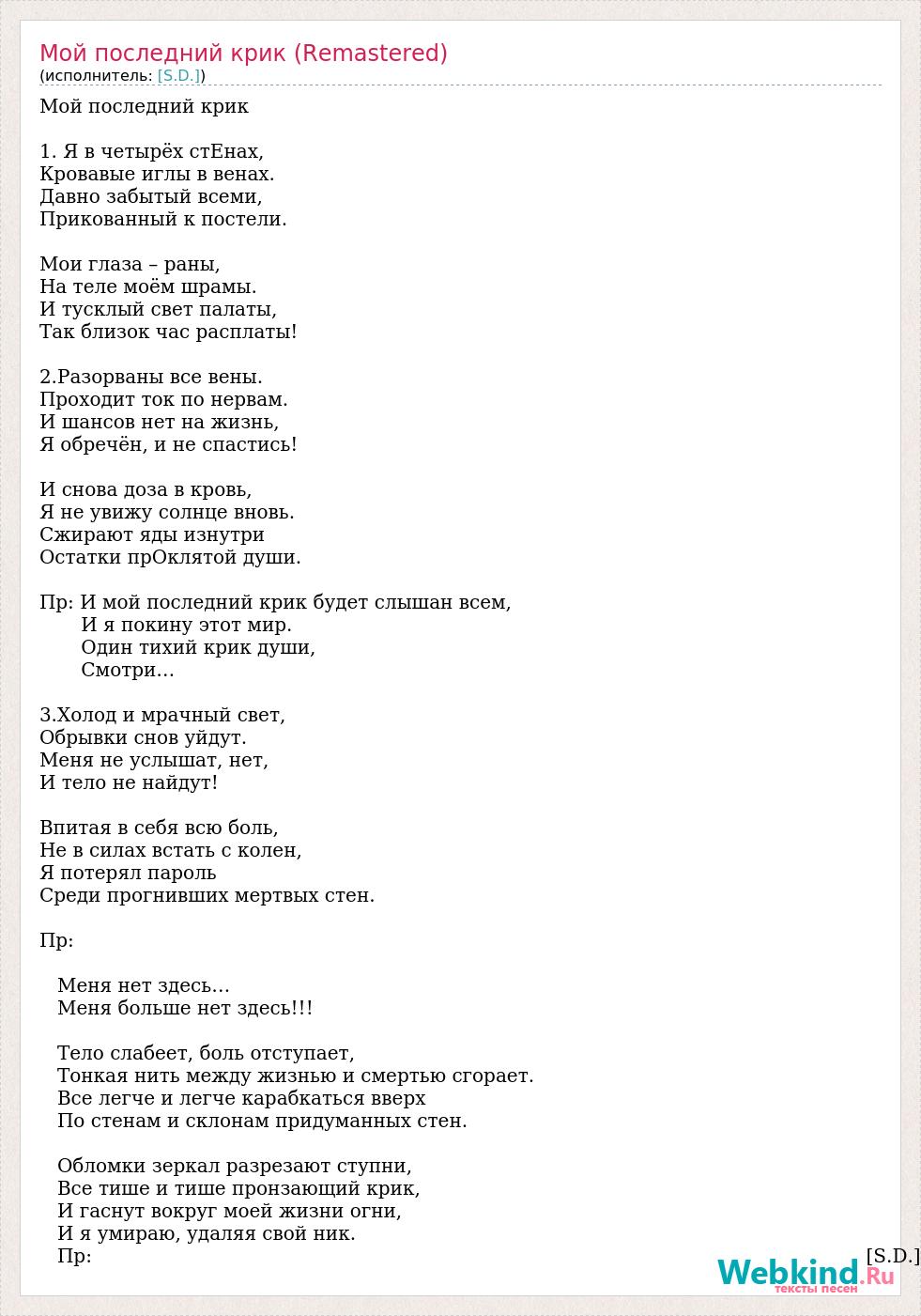 А как ты думаешь, о чем песня "Мой последний крик (Remastered)" ?