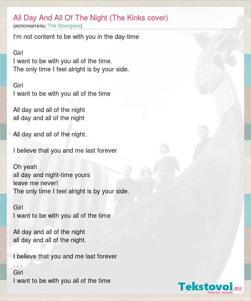 I'm not content to be with you in the day-time Girl I want to be with you all of the time. The only time I feel alright is by your side. Girl I want to be with you all of the time All day and all of the night all day and all of the night All day and all of the night. I believe that you and me last forever Oh yeah all day and night-time yours leave me never! The only time I teel alright is by your side. Girl I want to be with you all of the time All day and all of the night all day and all of the night. I believe that you and me last forever . . . Girl I want to be with you all of the time