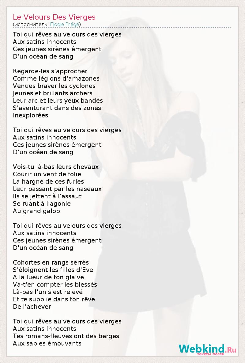А как ты думаешь, о чем песня "Le Velours Des Vierges" ?