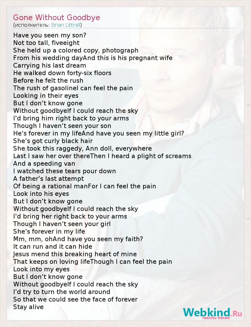 А как ты думаешь, о чем песня "Gone Without Goodbye" ?