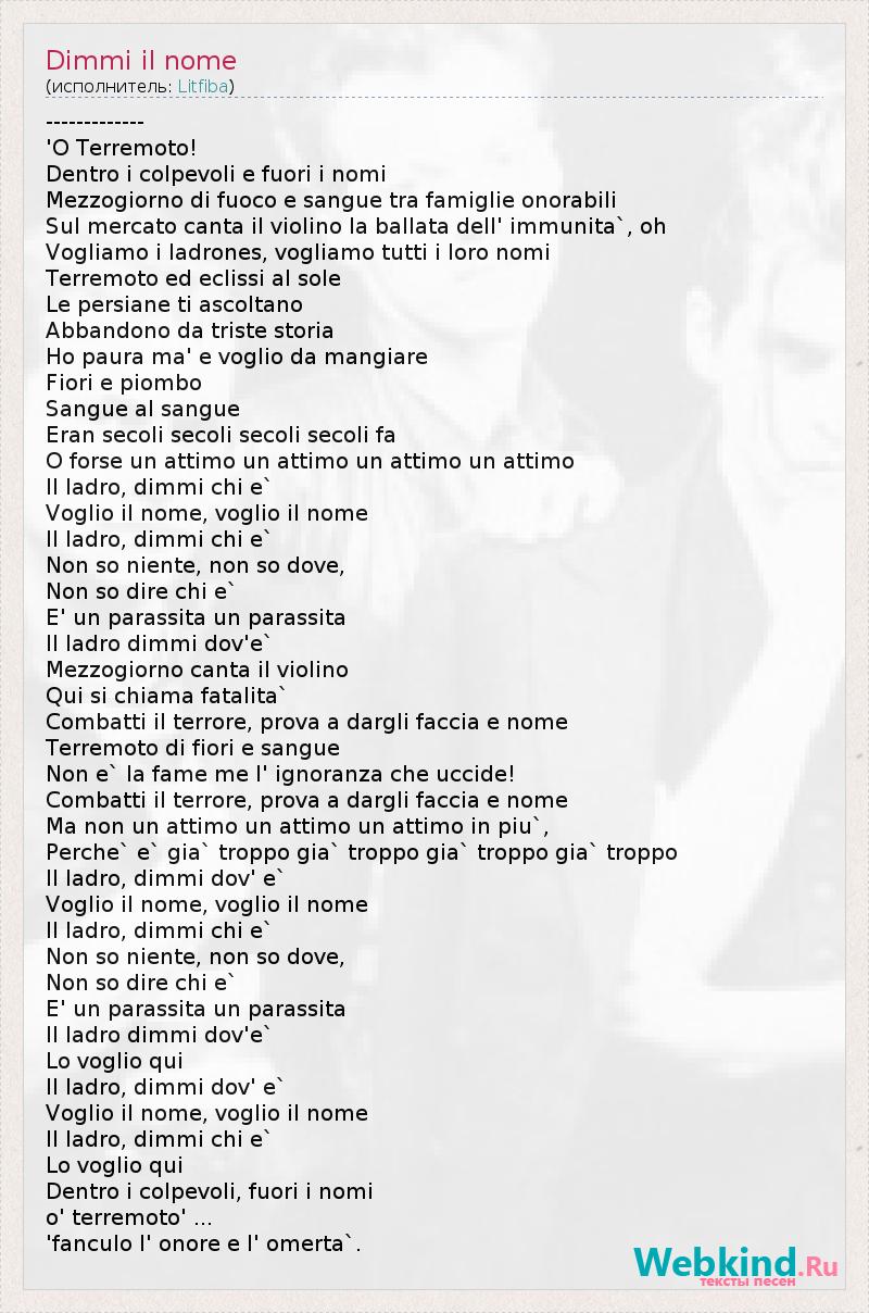 А как ты думаешь, о чем песня "Dimmi il nome" ?