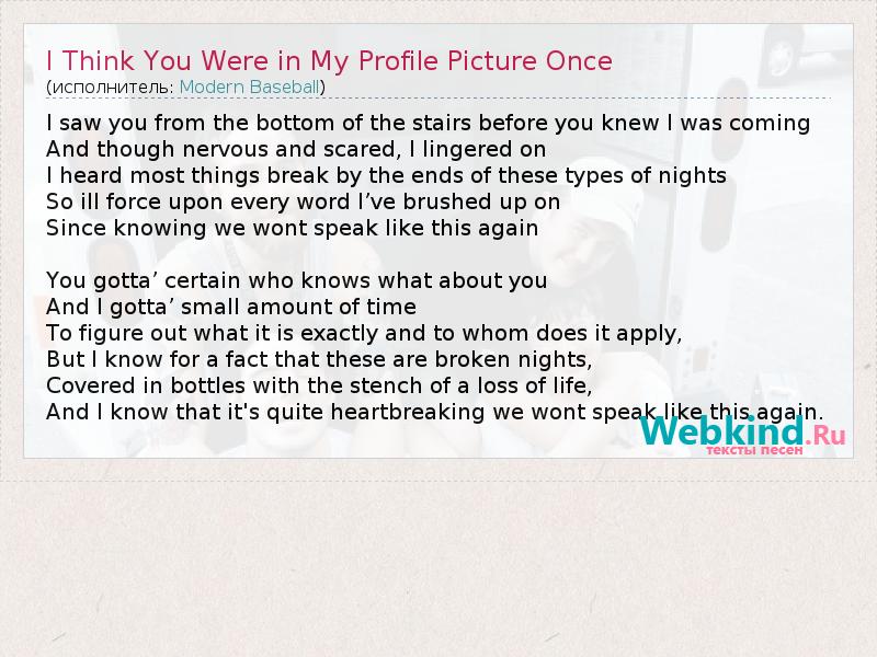 А как ты думаешь, о чем песня "I Think You Were in My Profile Picture Once" ?