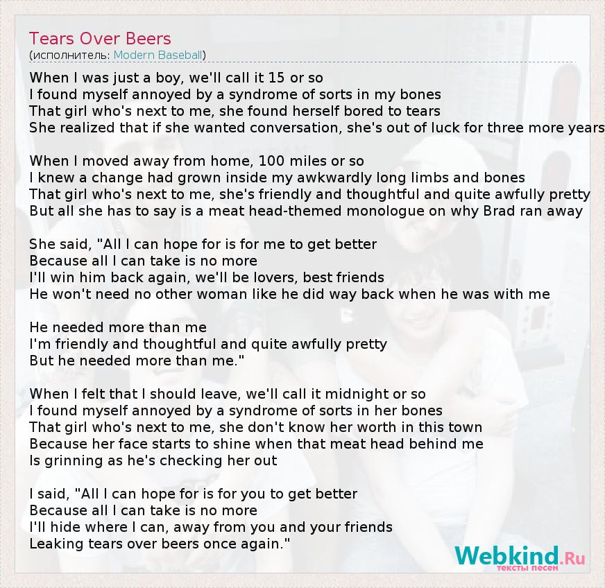 А как ты думаешь, о чем песня "Tears Over Beers" ?
