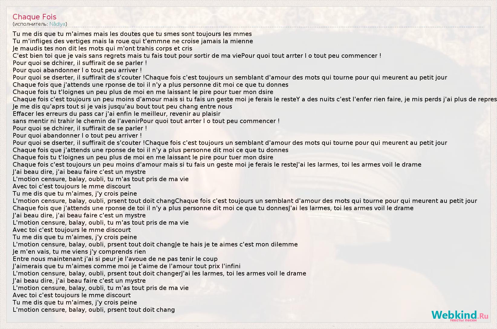 А как ты думаешь, о чем песня "Chaque Fois" ?