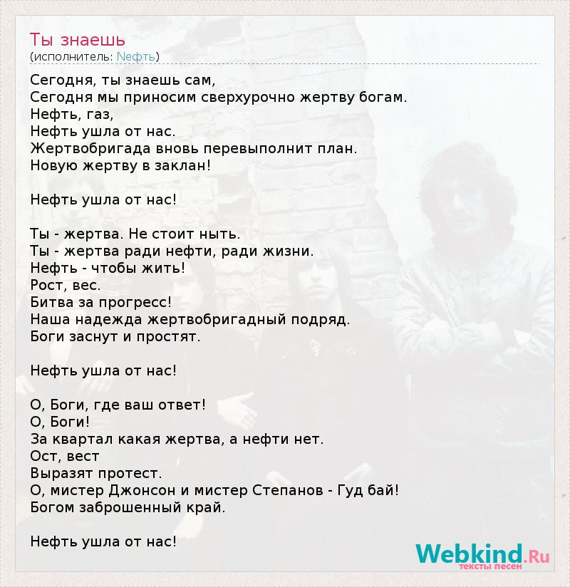 А как ты думаешь, о чем песня "Ты знаешь" ?