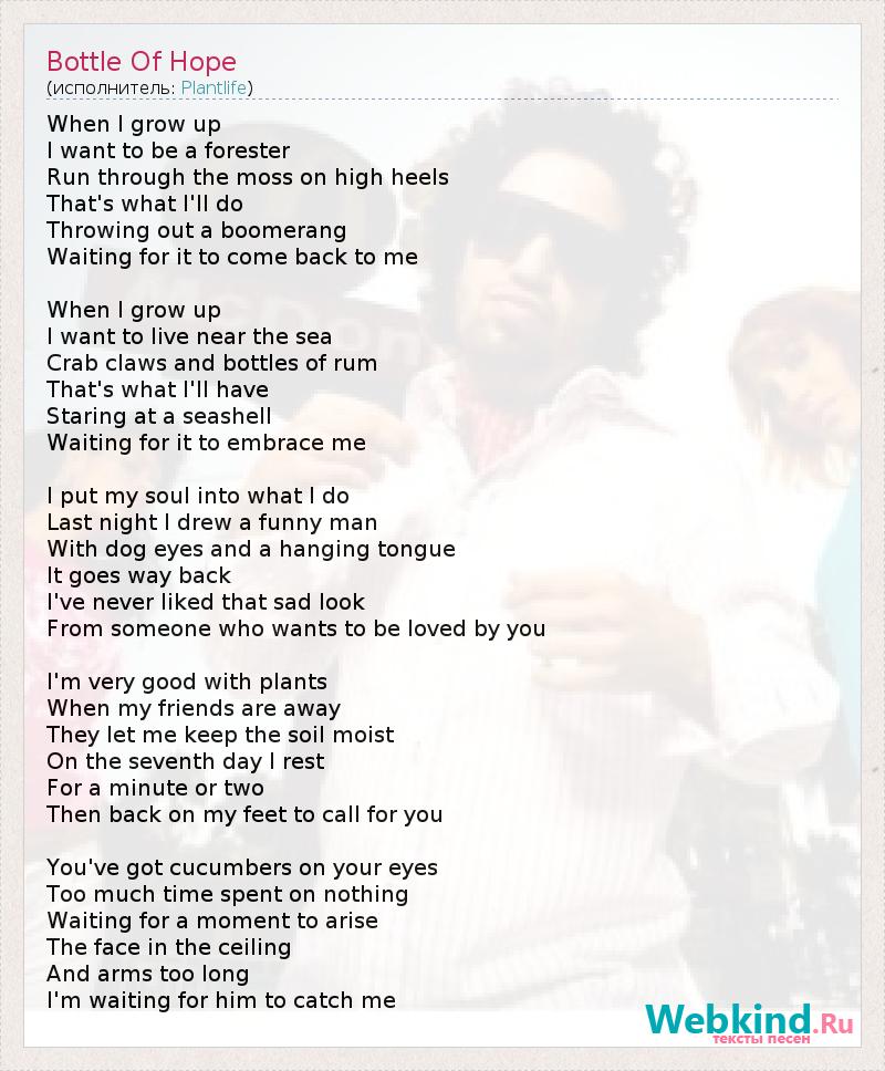 А как ты думаешь, о чем песня "Bottle Of Hope" ?