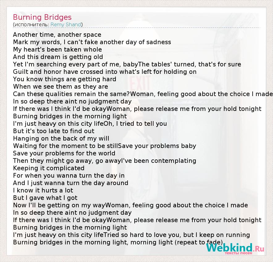 А как ты думаешь, о чем песня "Burning Bridges" ?