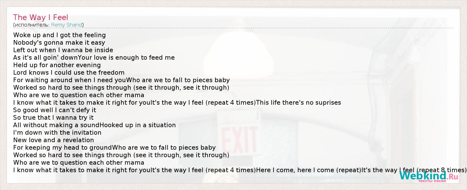 А как ты думаешь, о чем песня "The Way I Feel" ?