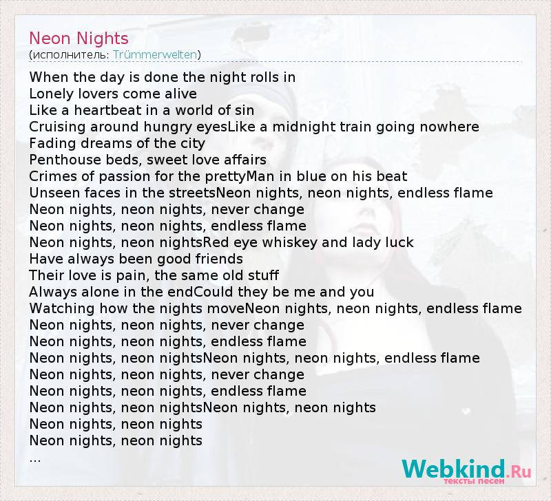 А как ты думаешь, о чем песня "Neon Nights" ?