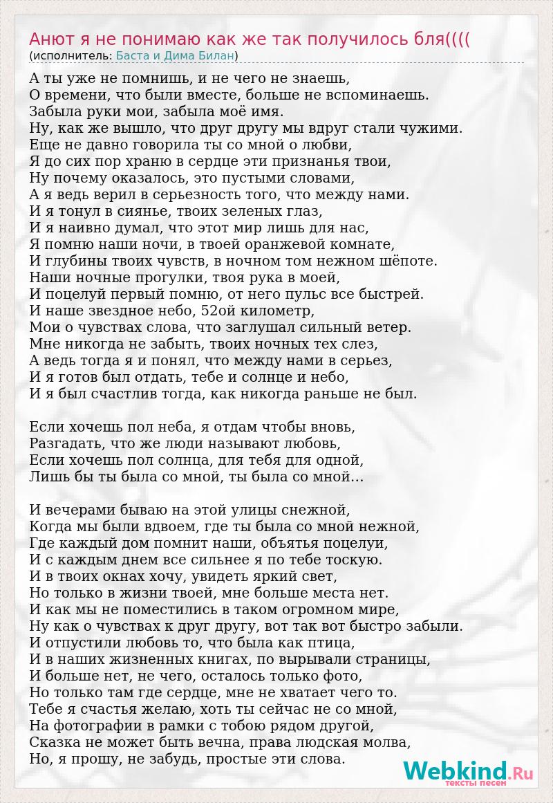 А как ты думаешь, о чем песня "Анют я не понимаю как же так получилось бля((((" ?