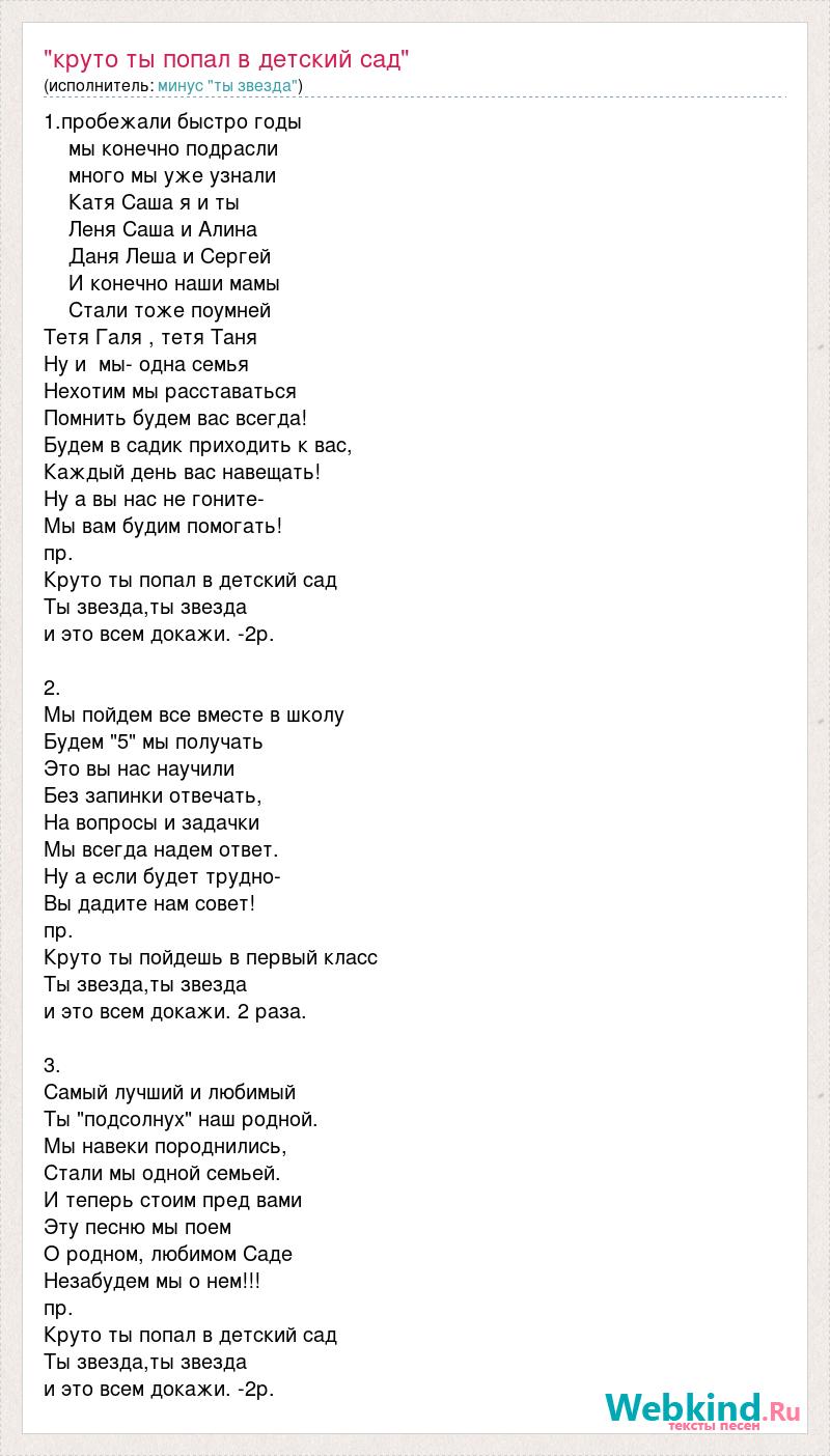 А как ты думаешь, о чем песня ""круто ты попал в детский сад"" ?