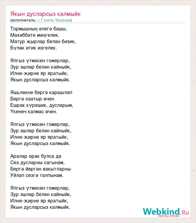 А как ты думаешь, о чем песня "Якын дусларсыз калмыйк" ?