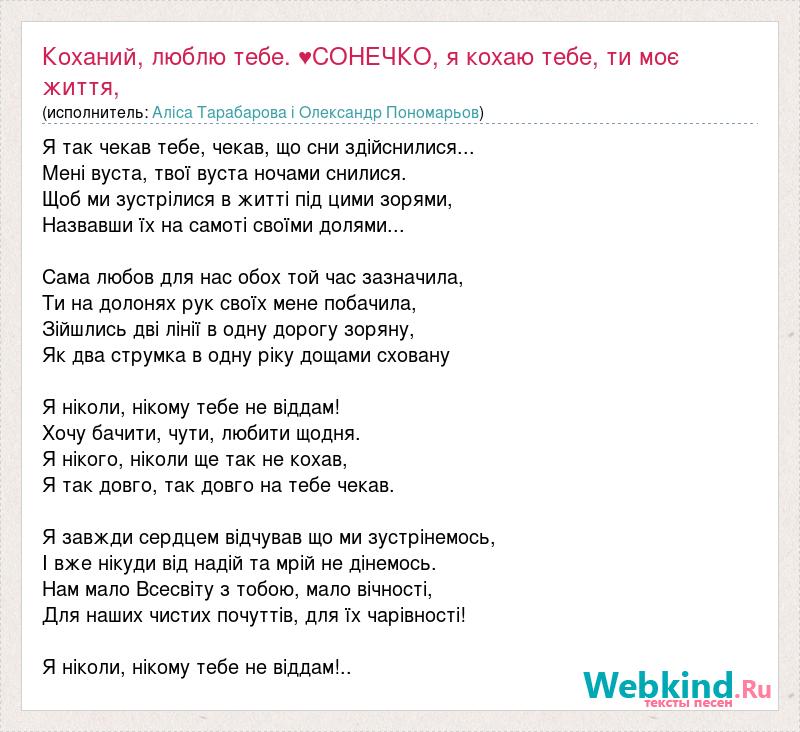 Главная→Исполнители→Аліса Тарабарова i Олександр Пономарьов→Коханий, люблю тебе. ♥СОНЕЧКО, я кохаю тебе, ти моє життя, я тебе дуже сильно л
