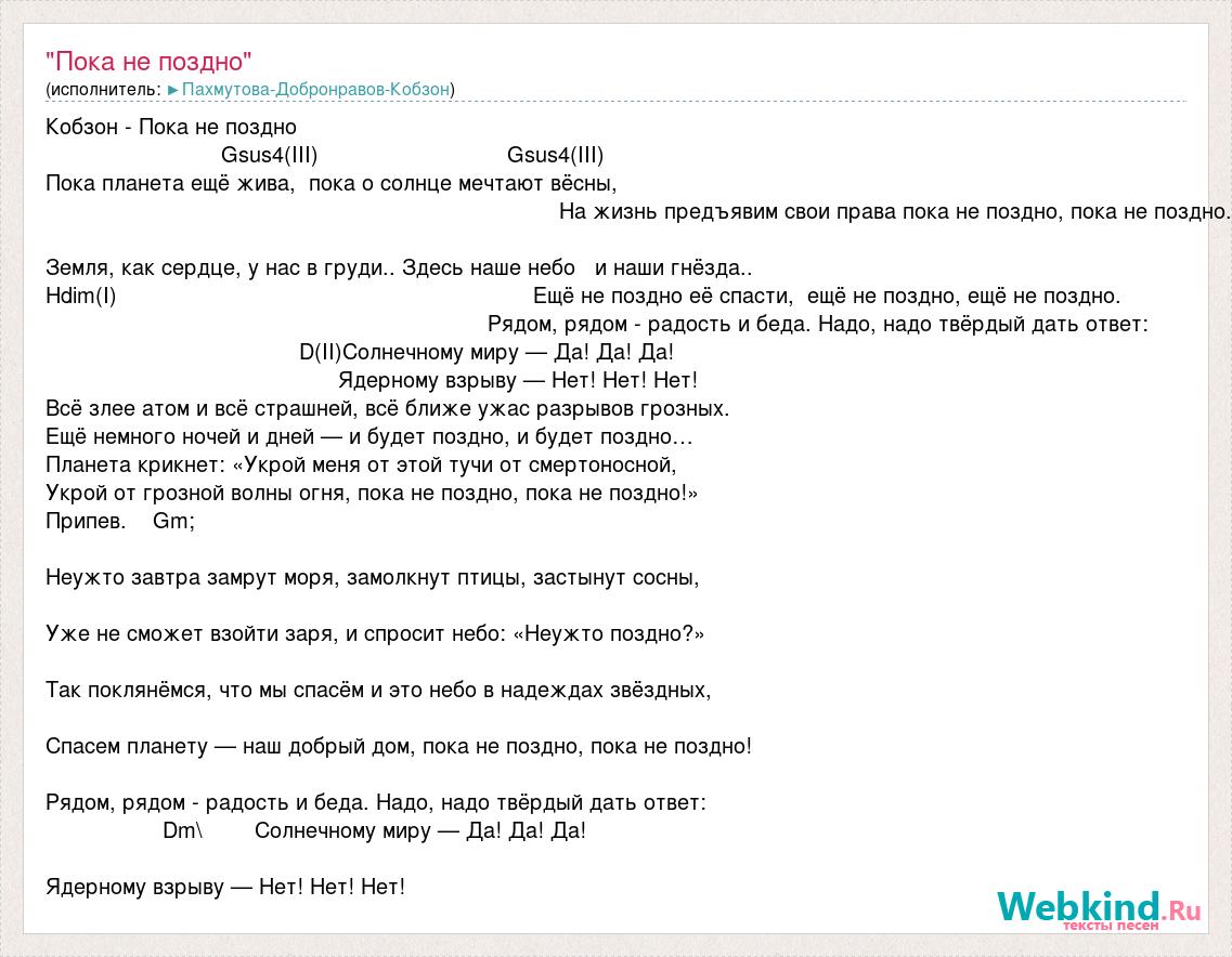 А как ты думаешь, о чем песня ""Пока не поздно"" ?