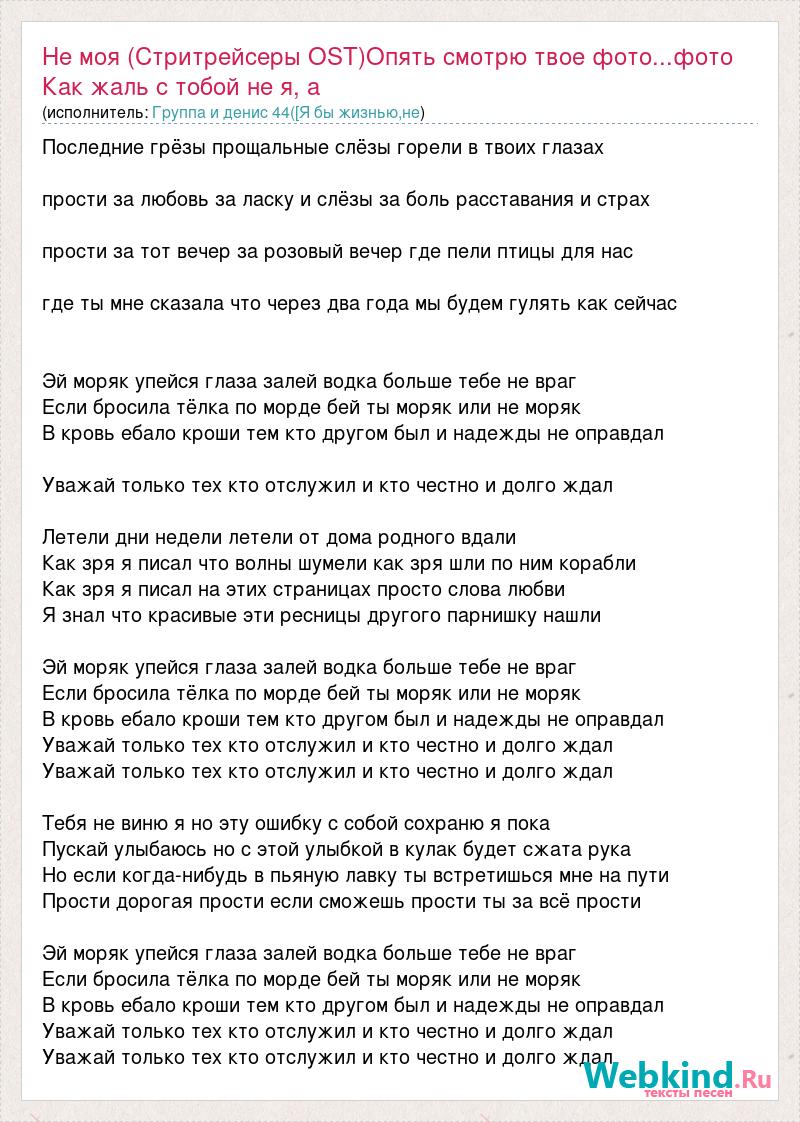 Главная→Исполнители→Группа и денис 44([Я бы жизнью,не→Не моя (Стритрейсеры OST)Опять смотрю твое фото...фото Как жаль с тобой не