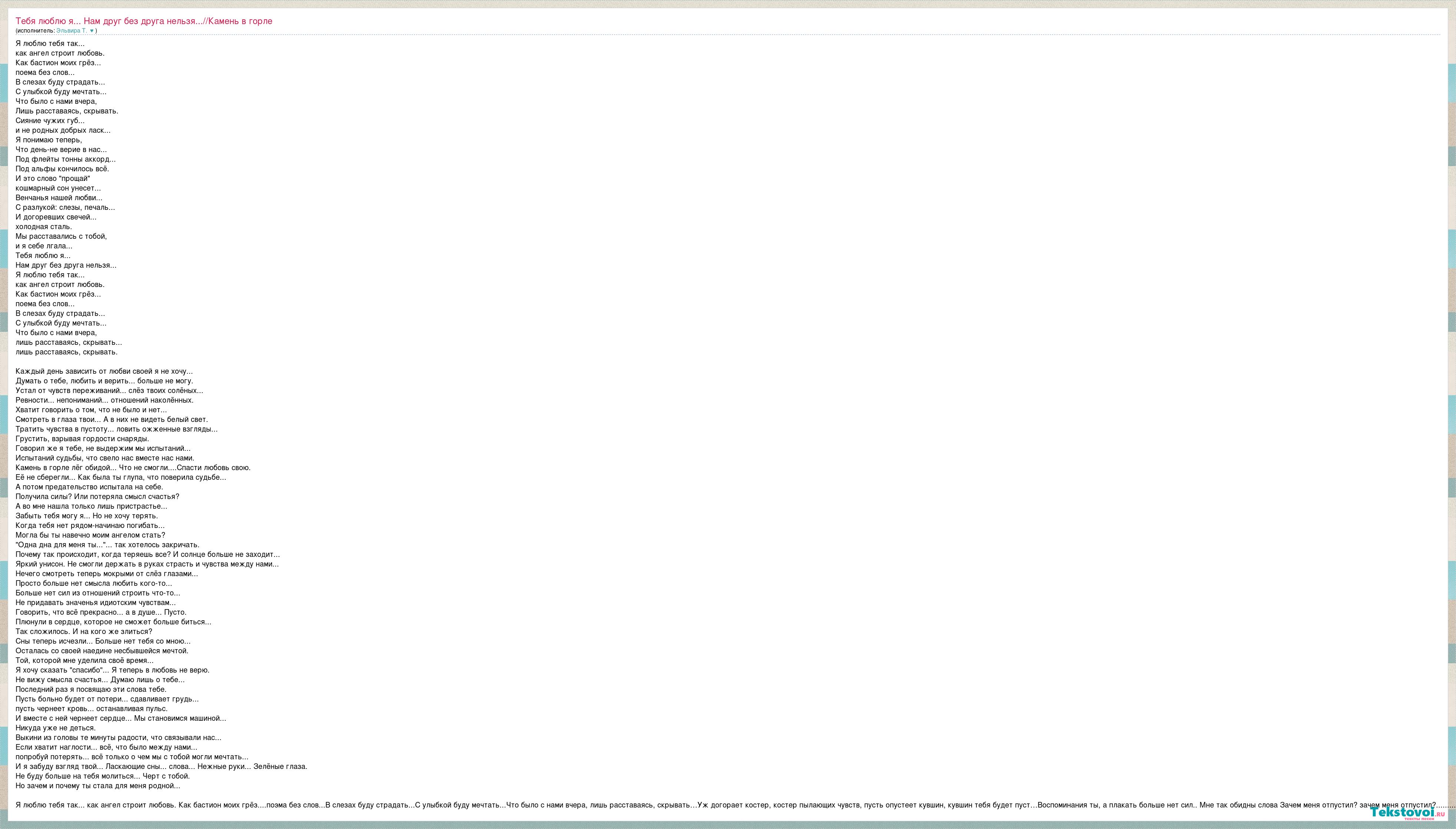 Тебя люблю я... Нам друг без друга нельзя...//Камень в горле лёг обидой... Что н