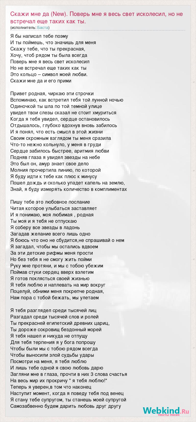 Скажи мне да (New). Поверь мне я весь свет исколесил, но не встречал е