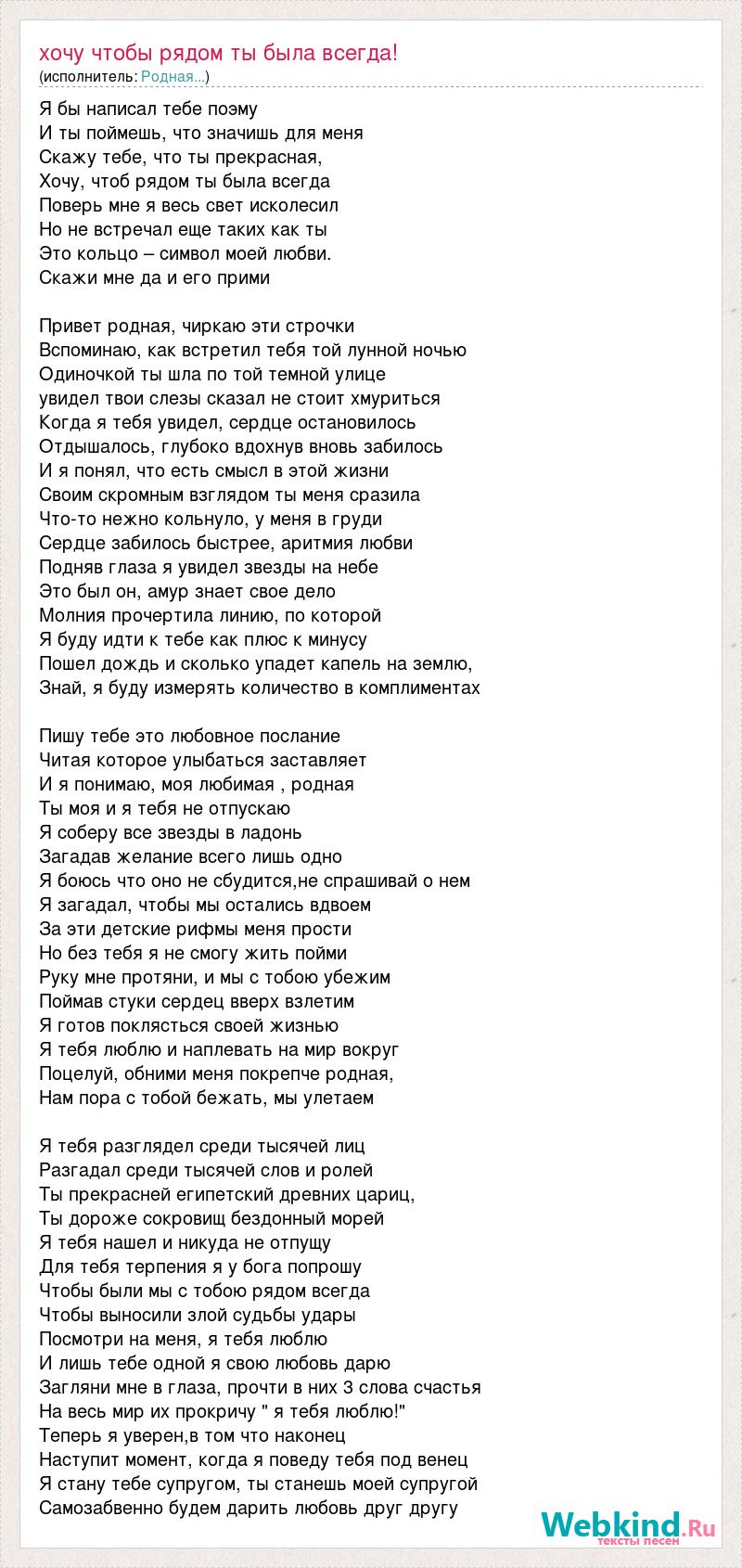 А как ты думаешь, о чем песня "Хочу чтобы рядом ты была всегда!" ?