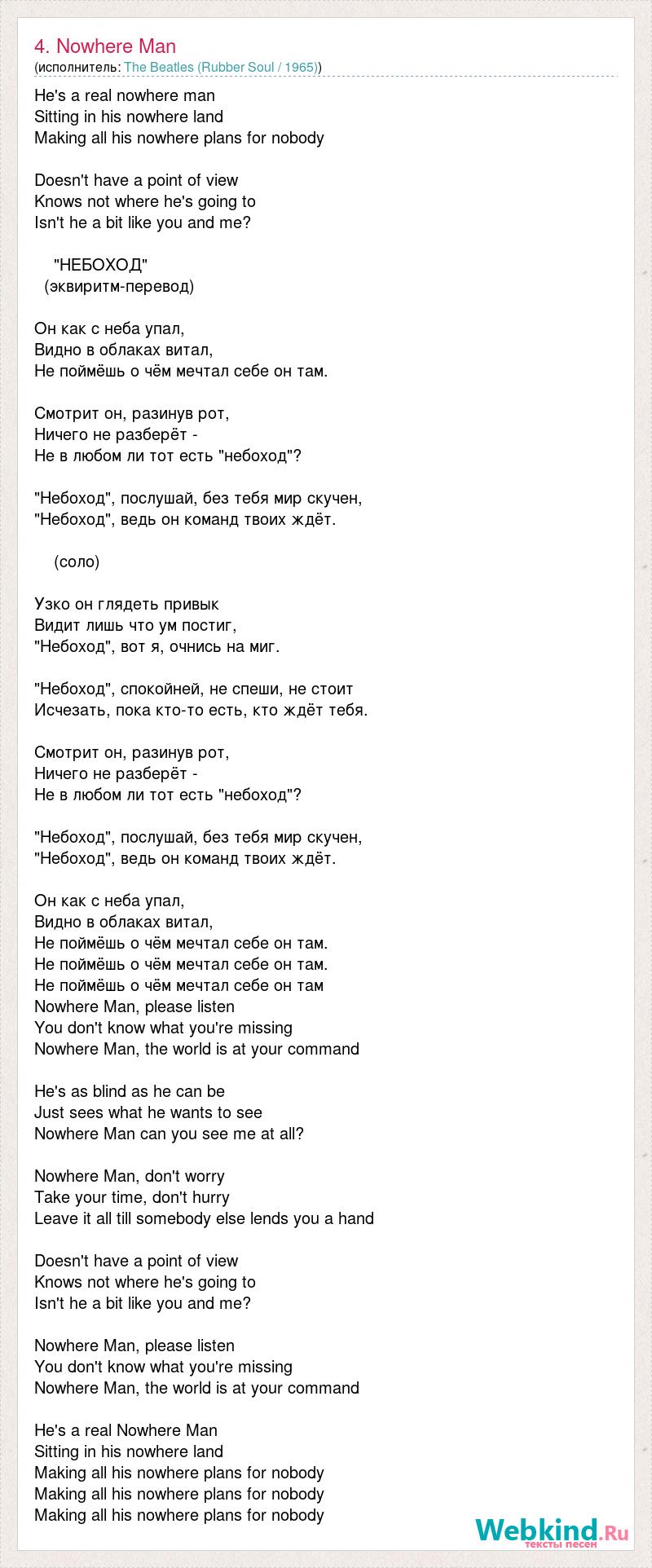 А как ты думаешь, о чем песня "4. Nowhere Man" ?