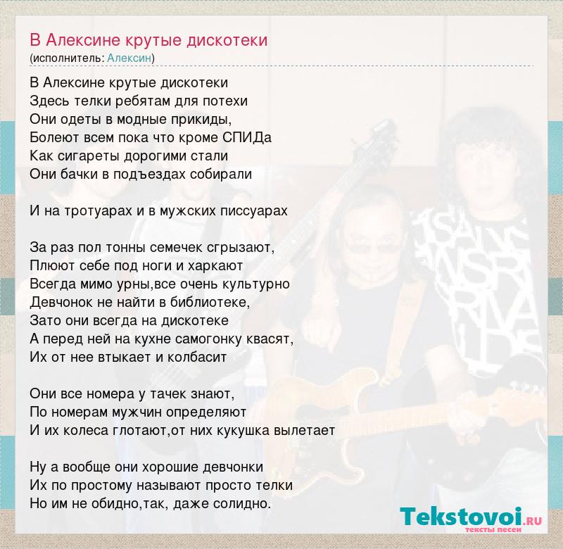 А как ты думаешь, о чем песня "В Алексине крутые дискотеки" ?