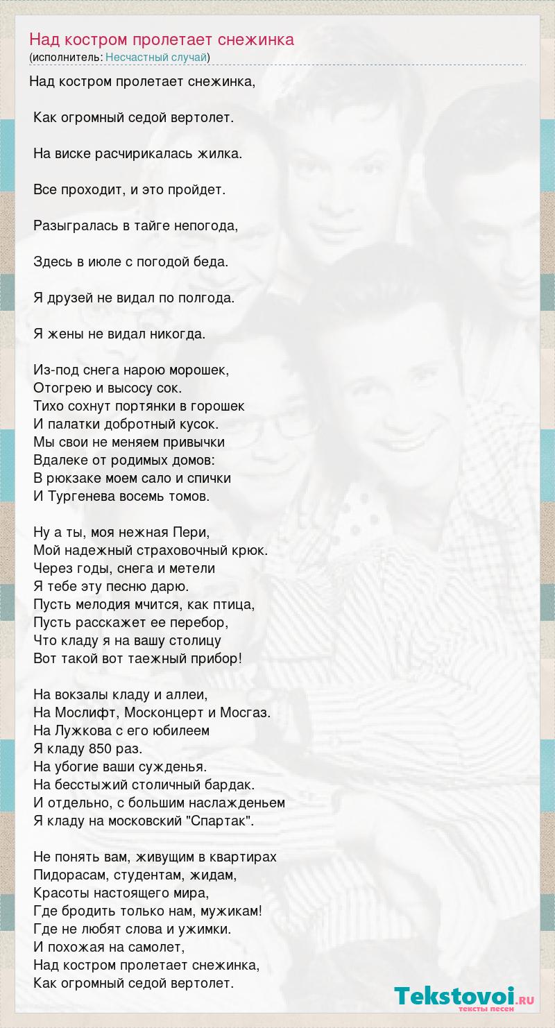 А как ты думаешь, о чем песня "Над костром пролетает снежинка" ?