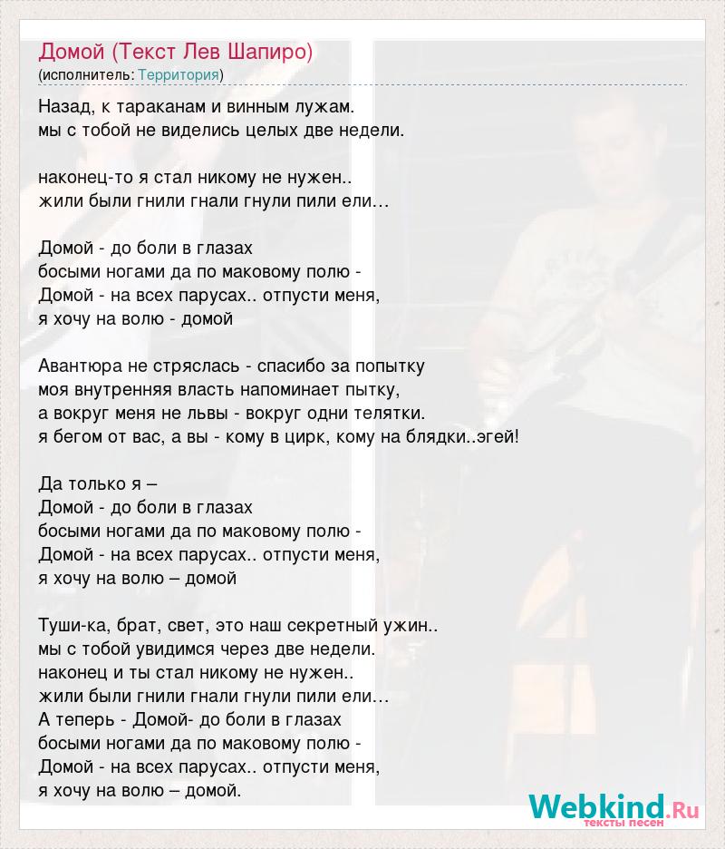 А как ты думаешь, о чем песня "Домой (Текст Лев Шапиро)" ?