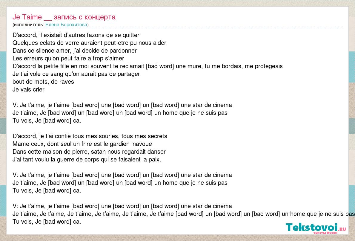 А как ты думаешь, о чем песня "Je Taime __ запись с концерта" ?