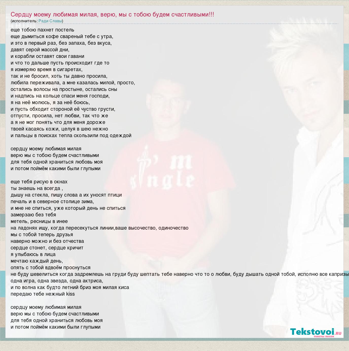 Главная→Исполнители→Ради Славы→Сердцу моему любимая милая, верю, мы с тобою будем счастливыми!!! Для тебя одно