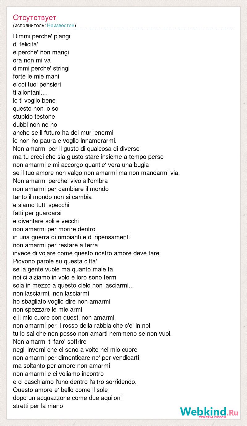 А как ты думаешь, о чем песня "Dimmi perche' piangi" ?