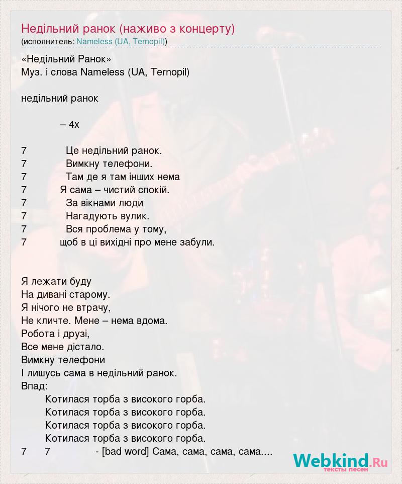 А как ты думаешь, о чем песня "Недільний ранок (наживо з концерту)" ?