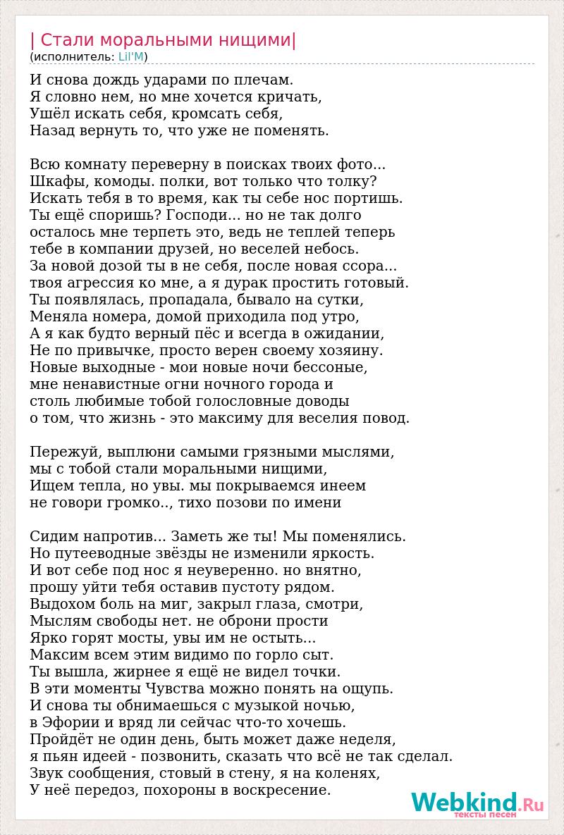 А как ты думаешь, о чем песня "| Стали моральными нищими|" ?