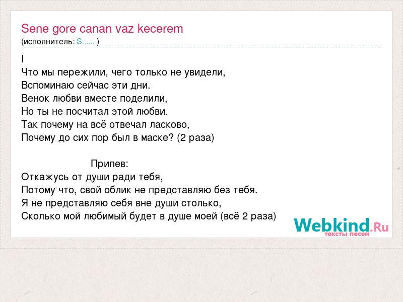 А как ты думаешь, о чем песня "Sene gore canan vaz kecerem" ?
