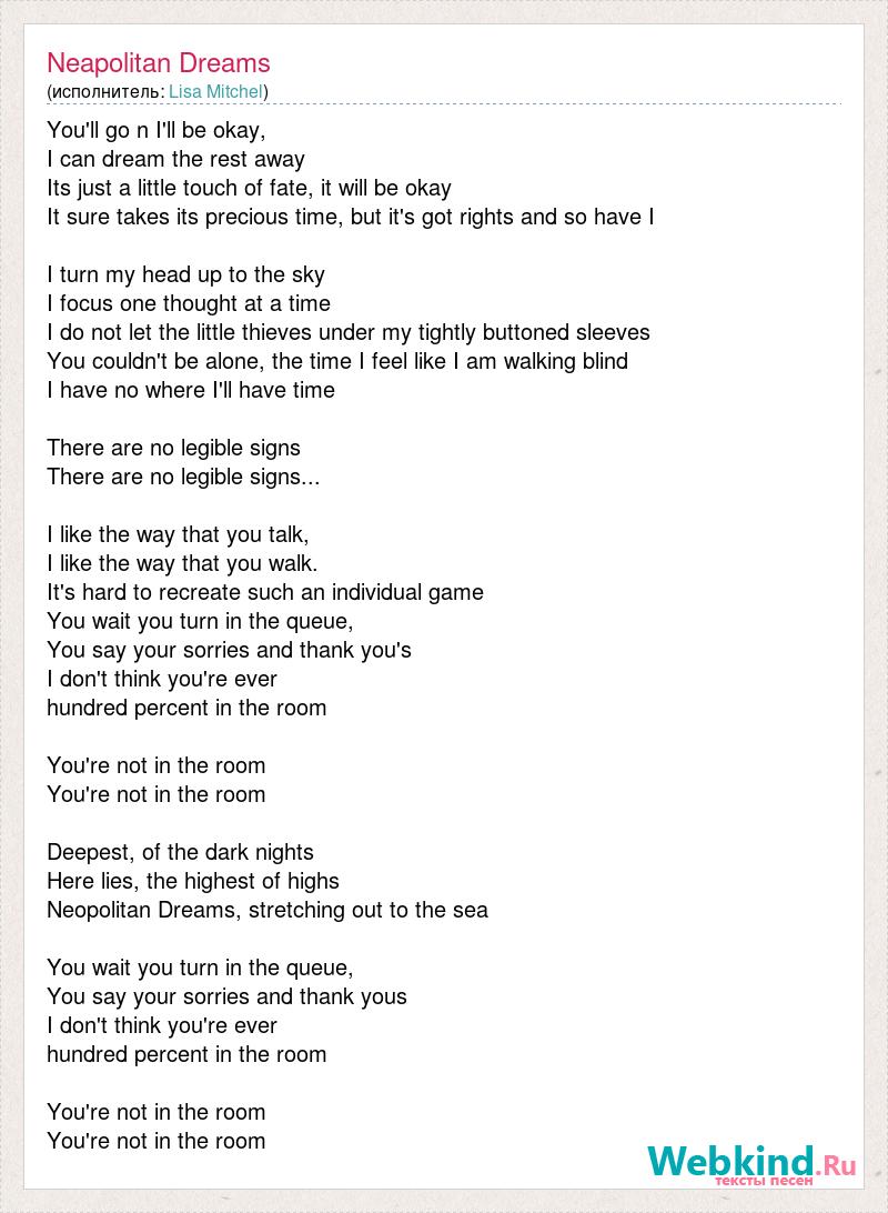 А как ты думаешь, о чем песня "Neapolitan Dreams" ?