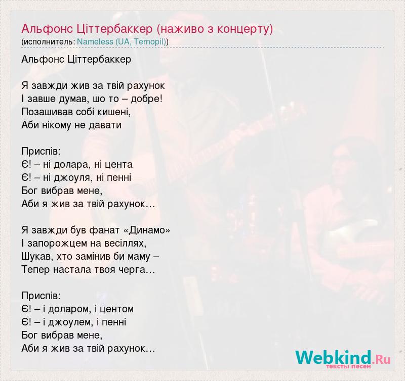 А как ты думаешь, о чем песня "Альфонс Ціттербаккер (наживо з концерту)" ?