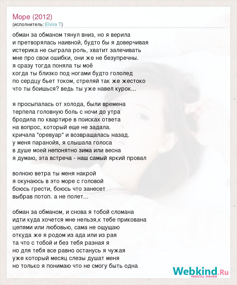 обман за обманом тянул вниз, но я верила и претворялась наивной, будто бы я доверчивая истерика не сыграла роль, хватит залечивать мне про свои ошибки, они же не безупречны. я сразу тогда поняла ты моё когда ты близко под ногами будто гололед по сердцу бьет током, стреляй так же жестоко что ты боишься? ведь ты уже навел курок... я просыпалась от холода, были времена терпела головную боль с ночи до утра бродила по квартире в поисках ответа на вопрос, который еще не задала. кричала "оревуар" и возвращалась назад. у меня паранойя, я слышала голоса в душе моей непонятно зима или весна я думаю, эта встреча - наш самый яркий провал волною ветра ты меня накрой я окунаюсь в это море с головой боюсь грести, боюсь что занесет выбрав потоп. а не полет... обман за обманом, и снова я тобой сломана идти куда хочется мне нельзя,к тебе прикована цепями или любовью, сама не ощущаю откуда же я родом из ада или из рая та что с тобой и без тебя разная я но для тебя все равно останусь я чужая уже который месяц слезы душат меня но только я понимаю что не смогу быть одна