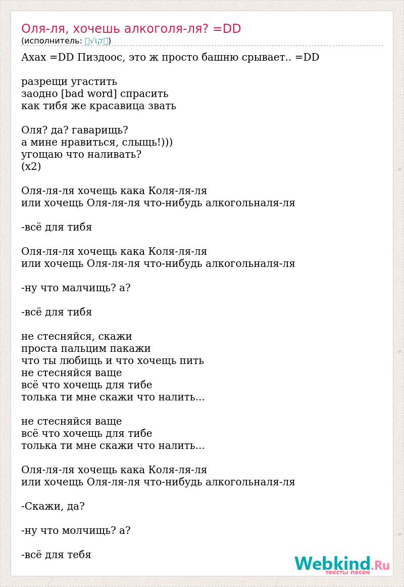 А как ты думаешь, о чем песня "Оля-ля, хочешь алкоголя-ля? =DD" ?