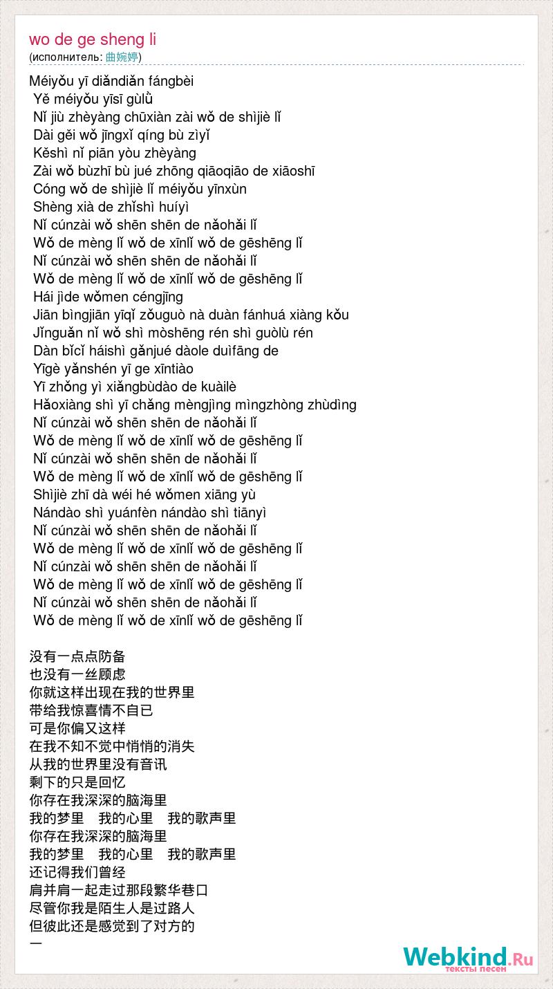 А как ты думаешь, о чем песня "Wo de ge sheng li" ?
