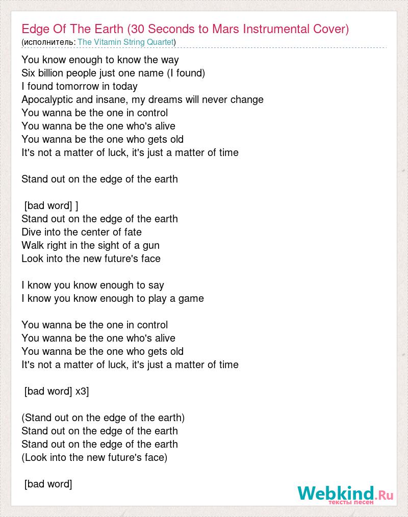 А как ты думаешь, о чем песня "Edge Of The Earth (30 Seconds to Mars Instrumental Cover)" ?
