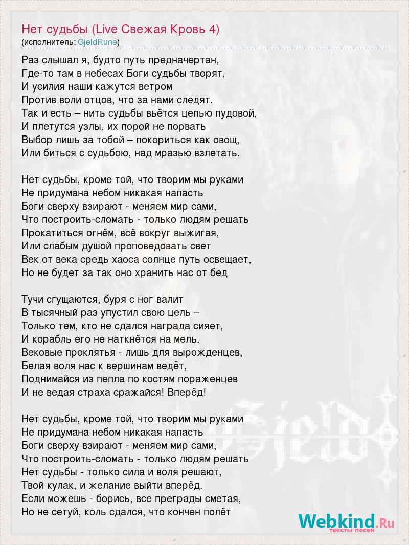 Нет судьбы (Live Свежая Кровь 4)